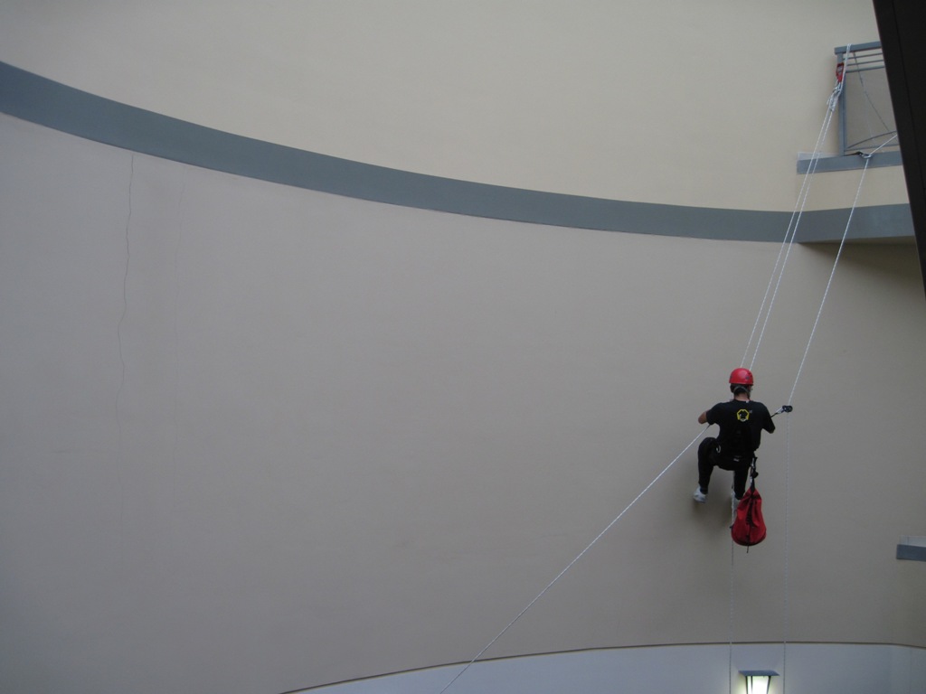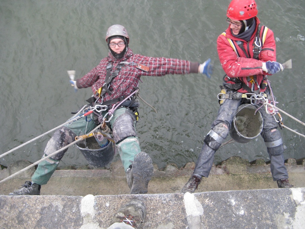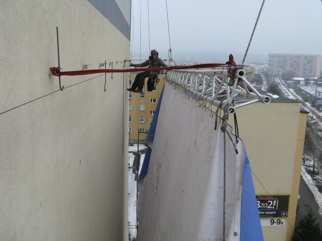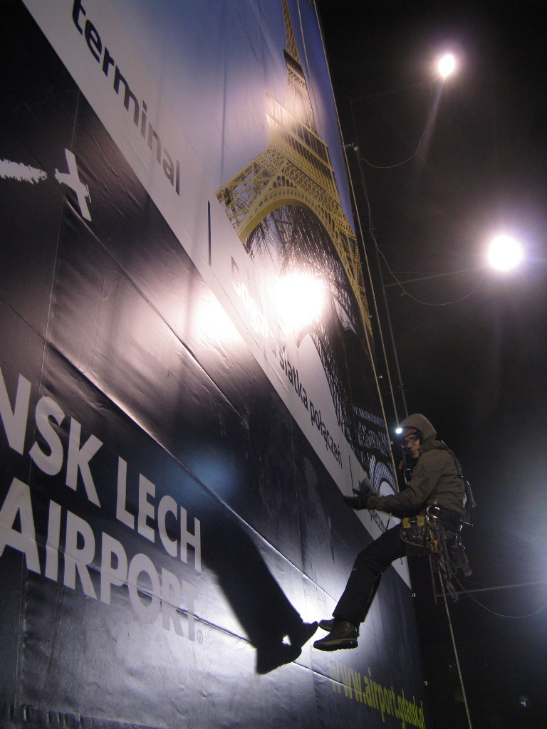 Montaż baneru wielkoformatowego na elewacji wieżowca |